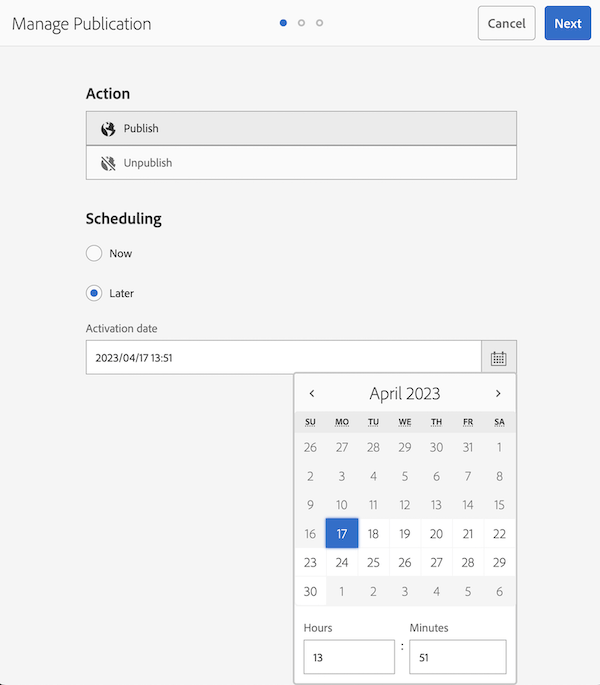 この記事では、Adobe Experience Managerで公開を管理のアクティブ化する日付の時刻形式をカスタマイズする方法について説明します。 ここで説明する手順に従います。