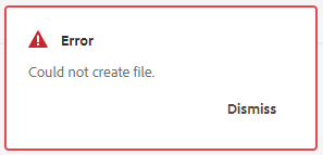 Adobe Experience Manager(AEM)で ditamap を作成しているときに「ファイルを作成できませんでした」というエラーメッセージが表示された場合、ドキュメントのステートに無効なパスが割り当てられている可能性があります。 これにお勧めのパスは /content/dam です。これはデフォルトパスでもあります。 この記事で説明している手順に従って、問題を解決します。