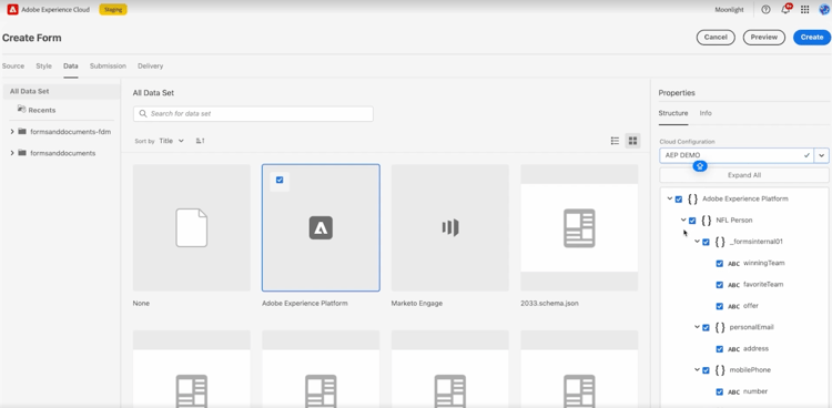 - 実装手順に従う - 上記のガイドを使用してクラウド設定を指定し、XDM スキーマ統合を使用して最初の AEP 接続フォームを作成します