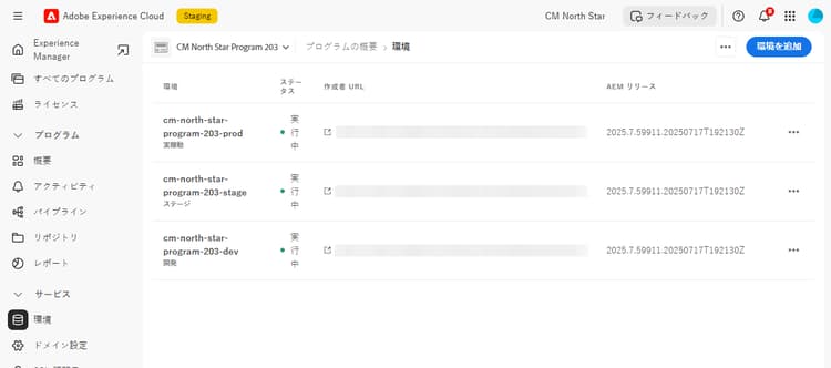 • 左側のサイドメニューの​ サービス ​で、 データアイコン 環境」をクリックします。