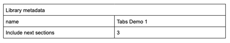 開発者が、ブロックを後続のセクションのコンテンツで構成したい場合があります。 このパターンは こちらに示す理由により推奨されませんが、使用を選択すると、ブロックプラグインは library metadata の include next sections プロパティを使用してこれらの項目をレンダリングできます。