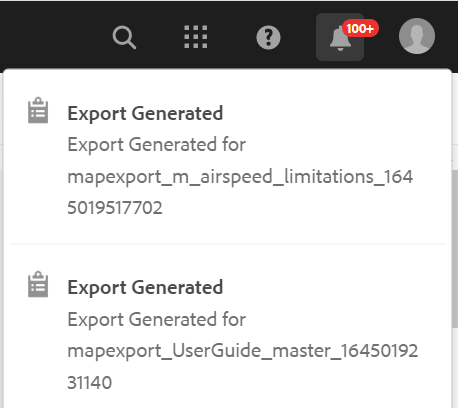 後でマップ ファイルをダウンロードするには、[後でダウンロード] をクリックします。 ダウンロードリンクには、AEM通知インボックスからアクセスできます。 インボックスで生成されたマップ通知をクリックして、.zip 形式でマップをダウンロードします。