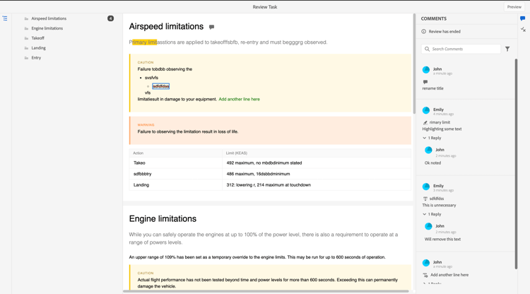 そのため、レビュー担当者と作成者のどちらも、レビュー済みコンテンツをコメントと共に表示できますが、完了したレビュータスクで変更を加えることはできません。