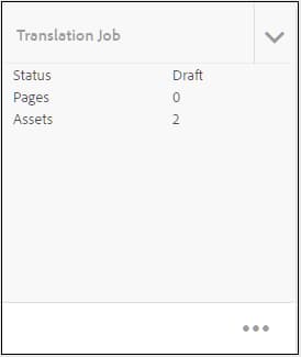 プロジェクトコンソールで翻訳プロジェクトに移動します。 新しい翻訳ジョブカードがフォルダーに作成されます。 省略記号をクリックして、フォルダーのアセットを表示します。