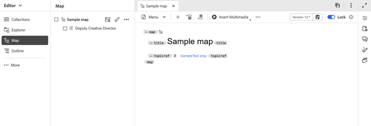 note note NOTE 高度なマップ エディタを使用するには、エディタでマップ ファイルにアクセスします。 管理者がマップ ファイルの既定のエディタとして高度なマップ エディタを設定している場合、マップ ファイルは高度なマップ エディタで直接開いて編集できます。 Adobe Experience Manager Guides as a Cloud Serviceのインストールと設定の「詳細マップエディターをデフォルトとして設定」セクションを表示します。