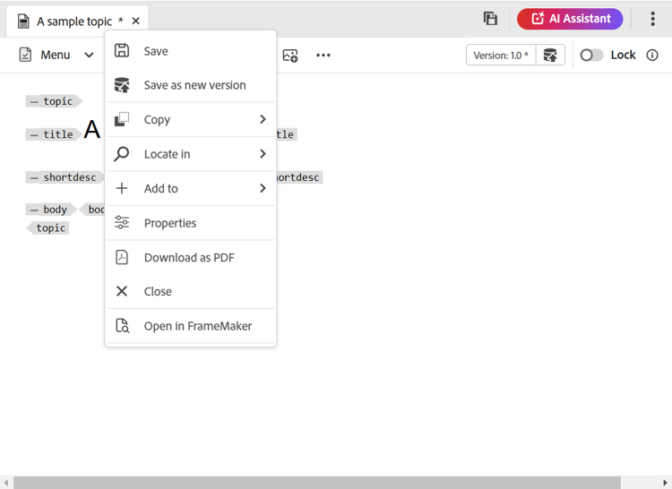 トピック内やトピック間でコンテンツを簡単にコピー&ペーストできます。 ソース要素の構造は、宛先で維持されます。 また、コピーされたコンテンツにコンテンツ参照が含まれている場合は、その参照もコピーされます。