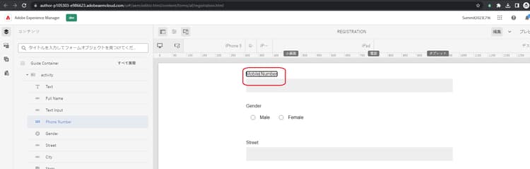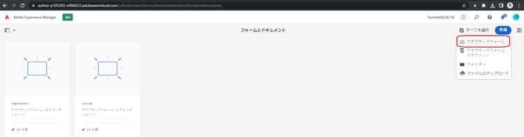 https://author-p105303-e986623.adobeaemcloud.com/ui%23/aem/aem/forms.html/content/dam/formsanddocuments)を開き、フォームを選択します。 -