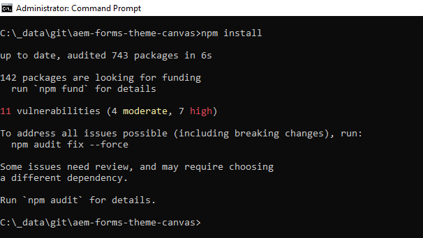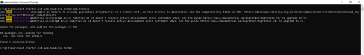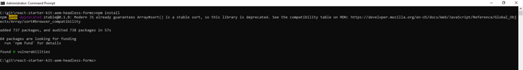 コマンドウィンドウを開き、react-starter-kit-aem-headless-forms ディレクトリにいることを確認し、次のコマンドを実行します。