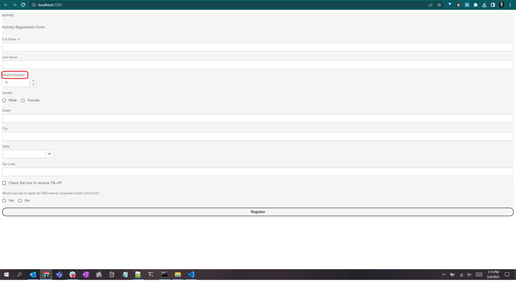 ヘッドレスフォームが表示された状態で、ブラウザータブを更新します。「電話番号」のラベルが「携帯電話番号」に変更されていることに注意してください。