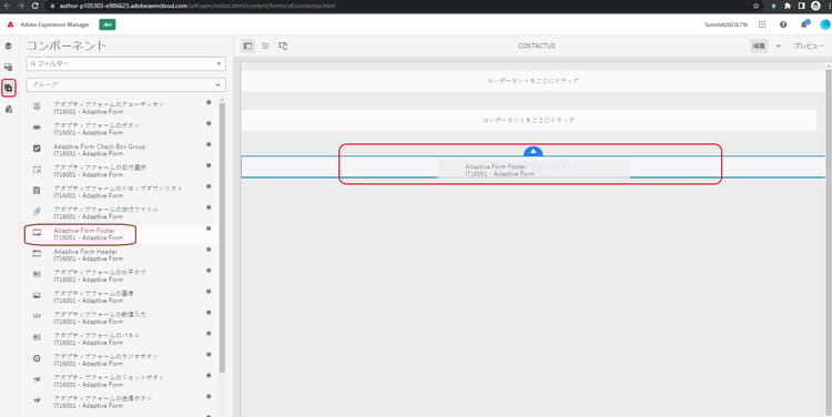 contactusフォームを選択し、「編集」をクリックします。アダプティブフォームエディターでフォームが開きます。 -