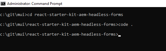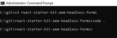 code language-shell cd react-starter-kit-aem-headless-forms code .