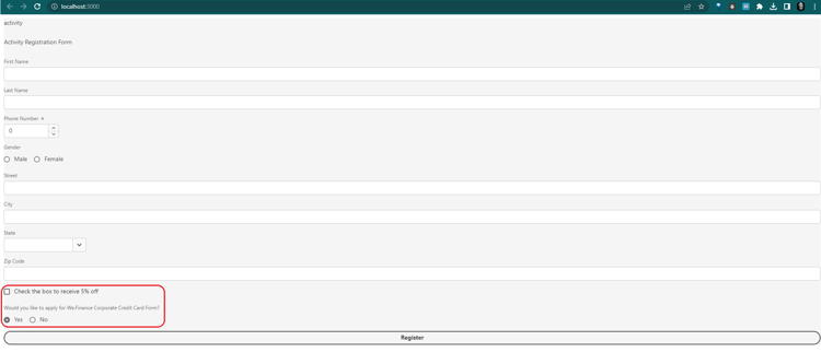 「チェックボックスをオンにして 5%オフを受け取る」オプションを選択します。クレジットカードを適用する後続のオプションは無効になります。