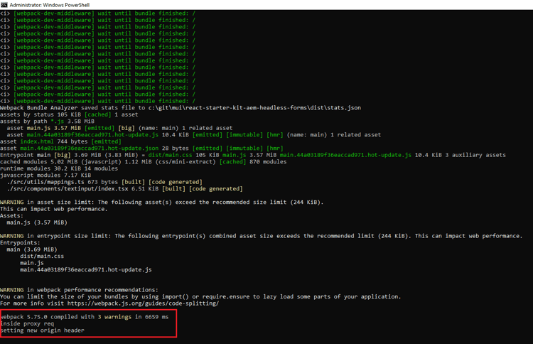 webpack 5.75.0 compiled with 3 warnings in 6659 msinside proxy reqsetting new origin header -