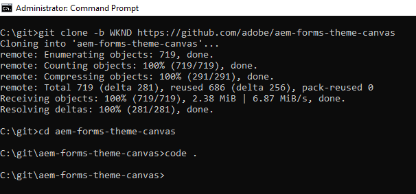 code language-shell git clone -b WKND https://github.com/adobe/aem-forms-theme-canvas -