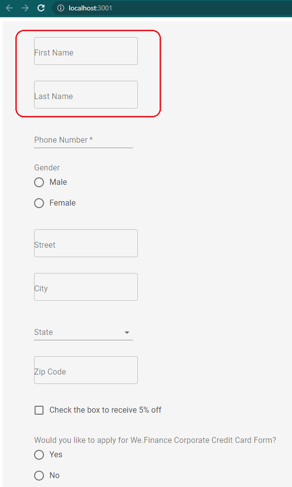 ブラウザーでフォームを送信して、「名前(名)」フィールドが赤くなるのを確認します。