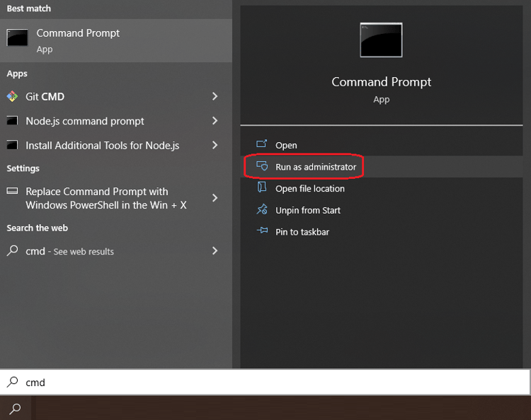 管理者権限でコマンドプロンプトまたはシェルを開きます。