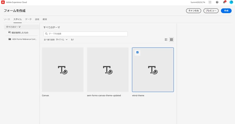「スタイル」タブをクリックし、「wknd-theme」テーマを選択します(下図を参照)。