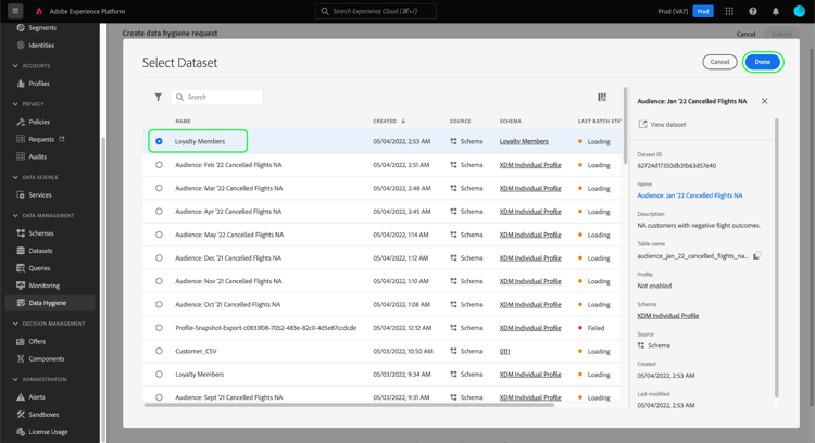 Data Hygiene API を使用したデータセット有効期限のスケジュール設定方法については、 データセット有効期限のエンドポイントガイド を参照してください。