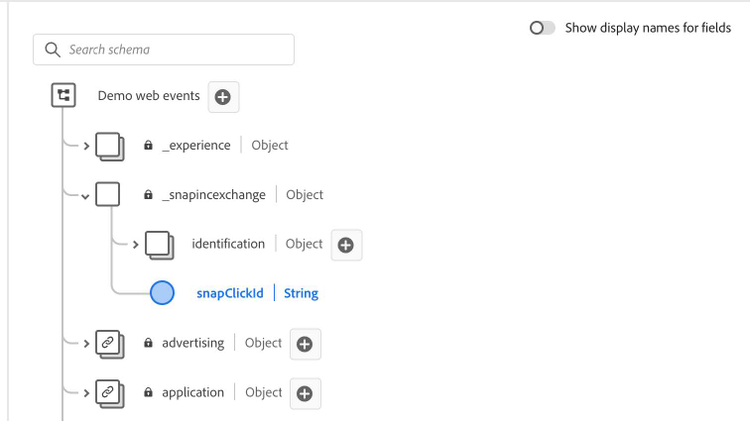 左側のナビゲーションにある「Schemas」タブを選択し、bootstrap スクリプトで作成された入力スキーマを見つけます。 スキーマの名前は、前の手順の config.yaml で定義した名前に対応します。スキーマをクリックし、スキーマの詳細とその構成を表示します。