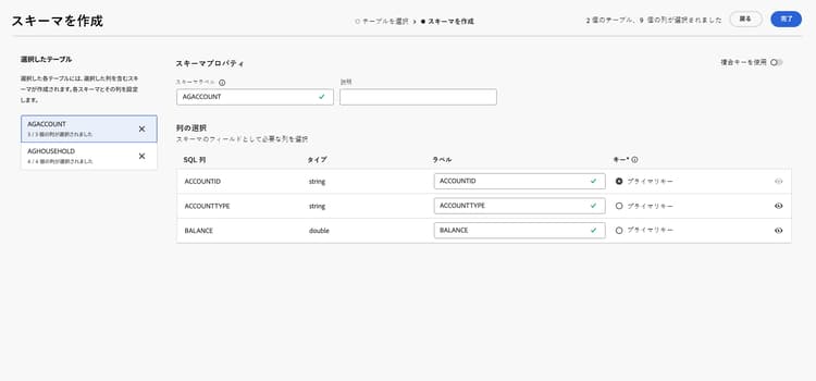 設定が完了したら、「完了」を選択してスキーマの作成を完了します。