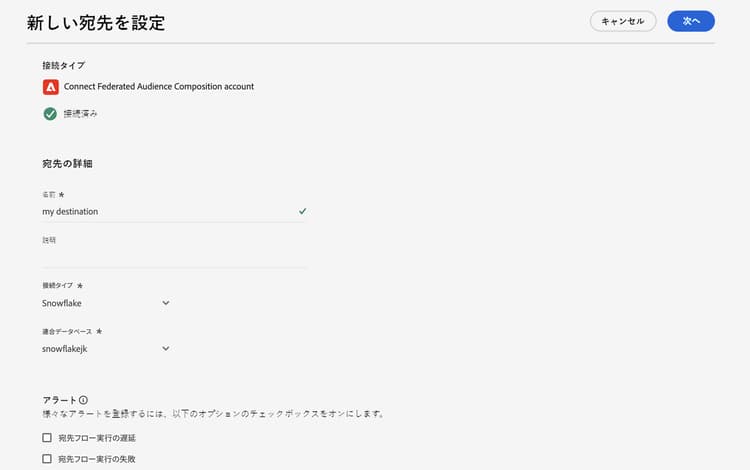 アラートについて詳しくは、UI を使用した宛先へのアラートの登録についての Adobe Experience Platform ドキュメントを参照してください。