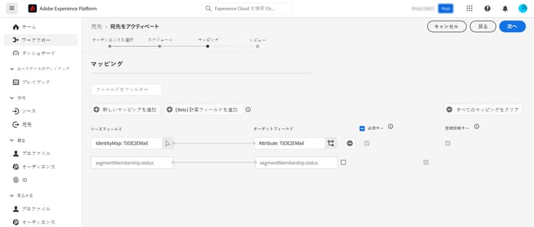 マッピング手順では、オーディエンスにエクスポートする属性フィールドと ID フィールドを選択します。詳しくは、Adobe Experience Platform ドキュメントのマッピング手順を参照してください。