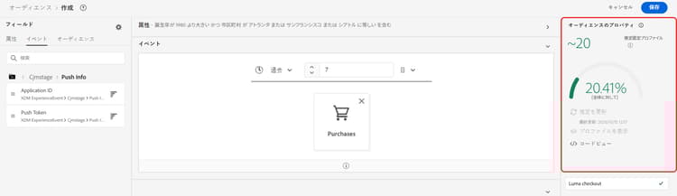 ワークスペースに新しいフィールドを追加および設定すると、オーディエンスのプロパティパネルが自動的に更新され、オーディエンスに属する推定プロファイルに関する情報が反映されます。