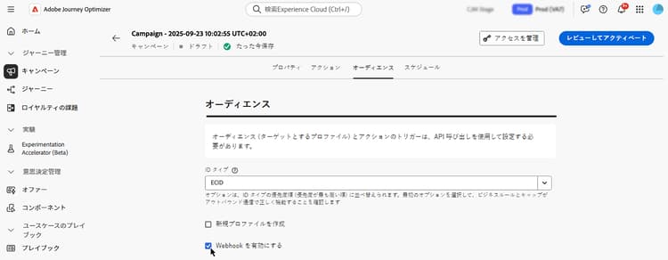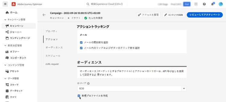 キャンペーン実行時のプロファイル作成のアクティブ化