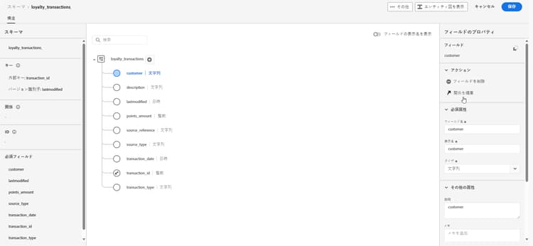 ロイヤルティメンバーシップ、ロイヤルティトランザクション、ロイヤルティ報酬などのスキーマを作成して、オーケストレーションキャンペーンに必要なモデルベースのデータモデルを定義します。各スキーマには、プライマリキー、バージョン管理属性、受信者や ブランド などのエンティティを参照する適切な関係を含める必要があります。