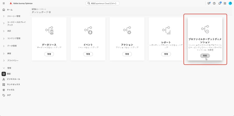 管理から 設定 メニューにアクセスし、「キャンペーンターゲットディメンション」を選択します。