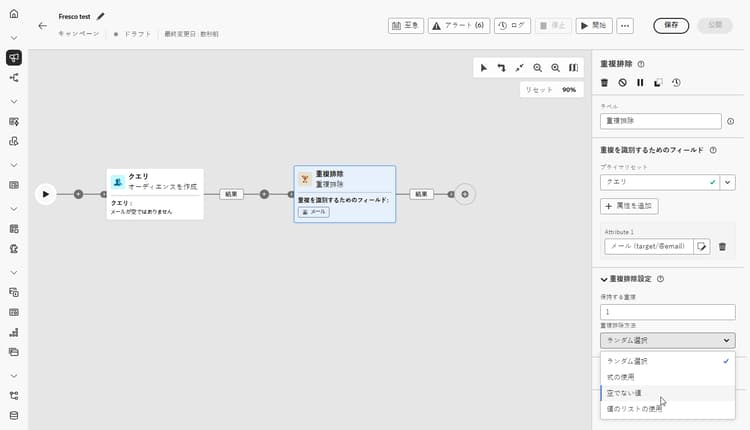 重複排除方法 を選択します。これにより、重複の各グループから保持するレコードをシステムが決定する方法が定義されます。