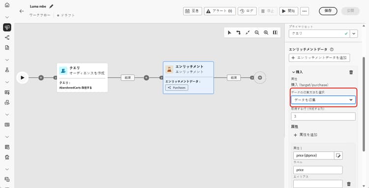 まず、エンリッチメントを行うデータが含まれているコレクションリンクを選択します。