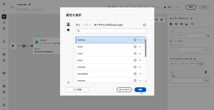 「エンリッチメントデータを追加」をクリックし、データのエンリッチメントに使用する属性を選択します。