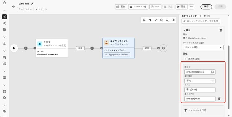 「ラベル」フィールドと「エイリアス」フィールドを使用すると、強化された属性を後続のアクティビティで識別しやすくなります。
