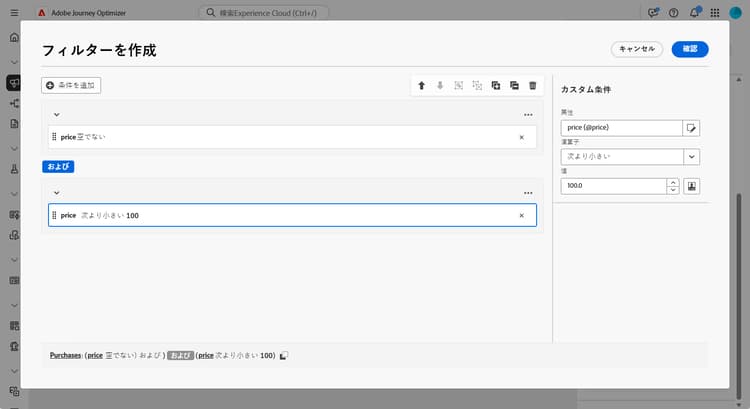 このユースケースでは、リンクされたテーブルからのデータを使用してオーディエンスを強化します。例えば、100 ドル未満で最新の 3 つの購入を取得するとします。