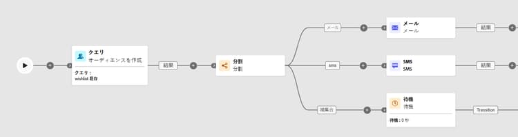 サブセットを追加したら、アクティビティにはサブセットと同数の出力トランジションが表示されます。調整されたキャンペーンキャンバスで簡単に識別できるように、各サブセットのラベルを変更することを強くお勧めします。