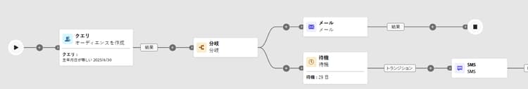 次に、待機 アクティビティの一般的なユースケースを示します。誕生日を祝うプロファイルには、プロモーションコードが記載されたメールが送信されます。29 日後、誕生日のプロモーションコードの有効期限が近づいていることを示すリマインダーとして、SMS が同じグループに送信されます。