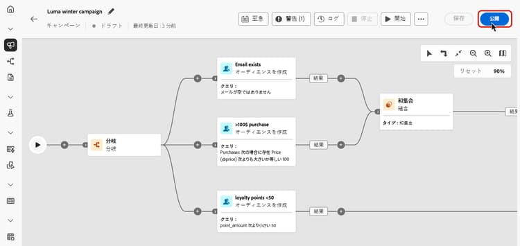 キャンペーンのテストが完了し、準備が整ったら、「公開」をクリックしてキャンペーンを公開します。