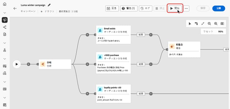 Journey Optimizer では、調整されたキャンペーンを公開前にテストできます。キャンペーンを作成すると、デフォルトで ドラフト 状態になります。この状態では、キャンペーンを手動で実行してフローをテストできます。