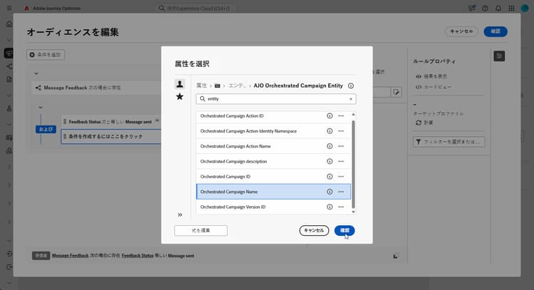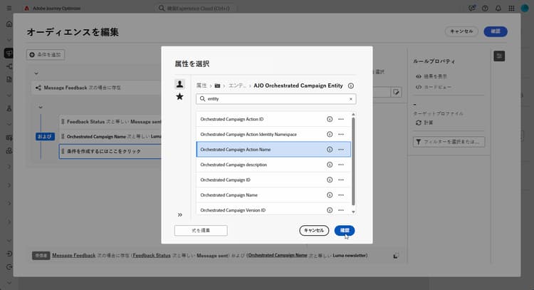 調整されたキャンペーンアクション名属性を選択して、調整キャンペーン内の特定のメッセージまたはアクティビティをターゲットにします。