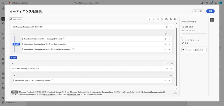 フィードバックベースのリターゲティングルールを使用すると、メッセージフィードバック属性にキャプチャされたメッセージ配信イベントに基づいて、受信者をリターゲットできます。これらのイベントには、メッセージの送信済み、開封済み、バウンス済み、スパムとしてマーク済みなどの結果が含まれます。