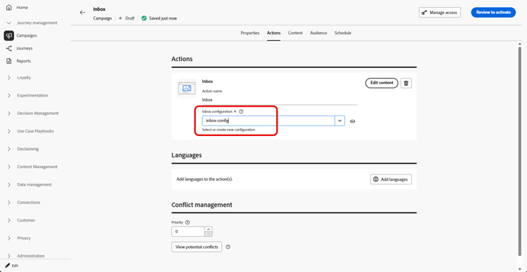 キャンペーンを通じてメッセージの受信トレイを作成するには、次の手順に従います。