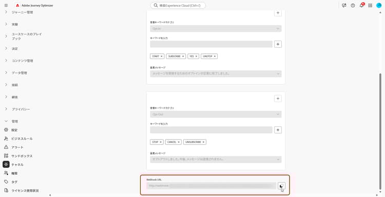 note note NOTE デフォルトでは、Journey Optimizer は、サンドボックスレベルの一般設定で指定された電話番号を使用します。このフィールドを更新すると、この設定を使用するジャーニーおよびキャンペーンのデフォルト値が上書きされます。 -