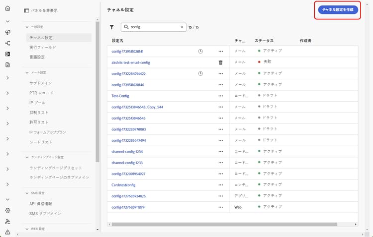 チェックが正常に完了すると、チャネル設定のステータスが「アクティブ」になります。メッセージの配信に使用する準備が整いました。