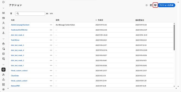 カスタムアクションレポートページにアクセスするには、アクションホームページから「