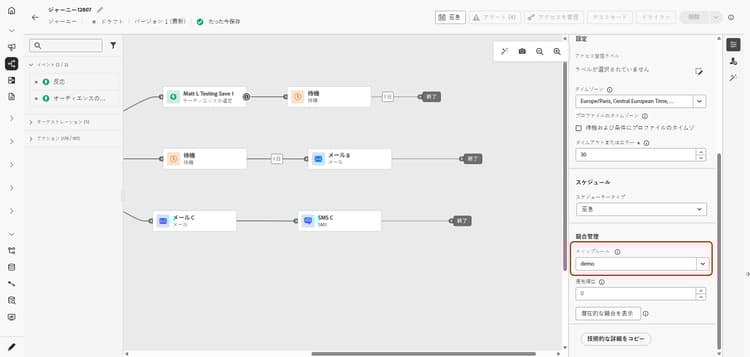 ジャーニーにキャップルールを適用するには、ジャーニーにアクセスしてプロパティを開きます。キャップルールドロップダウンで、関連するルールセットを選択します。ジャーニーをアクティベートすると、ルールセットで定義されたキャップルールが有効になります。