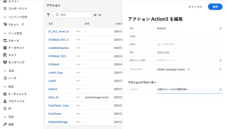 - 編集 をクリックして、アクション設定を開きます。