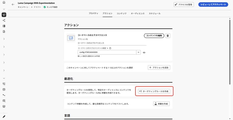 「最適化」セクションで、「ターゲティングルールを作成」を選択します。