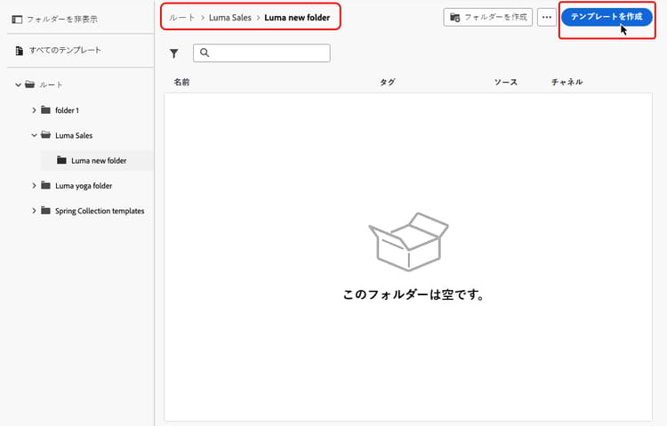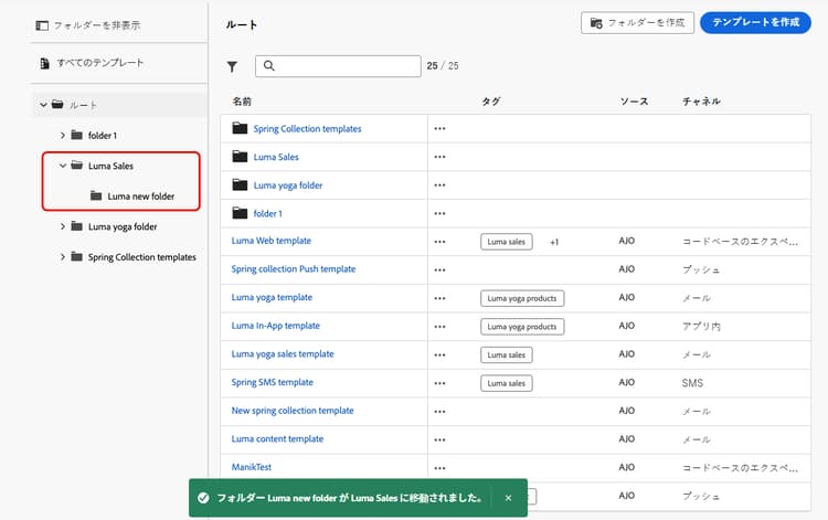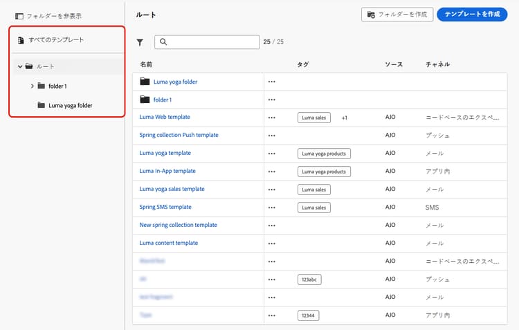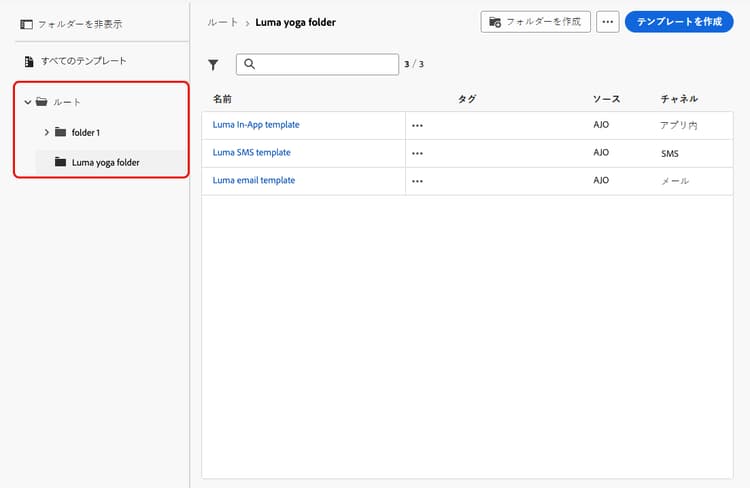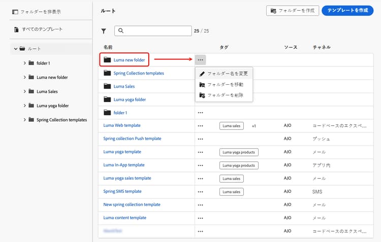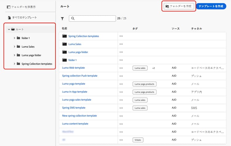 フォルダーを使用したコンテンツテンプレートの管理 folders