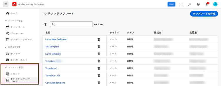 コンテンツテンプレートへのアクセスと管理 access-manage-templates